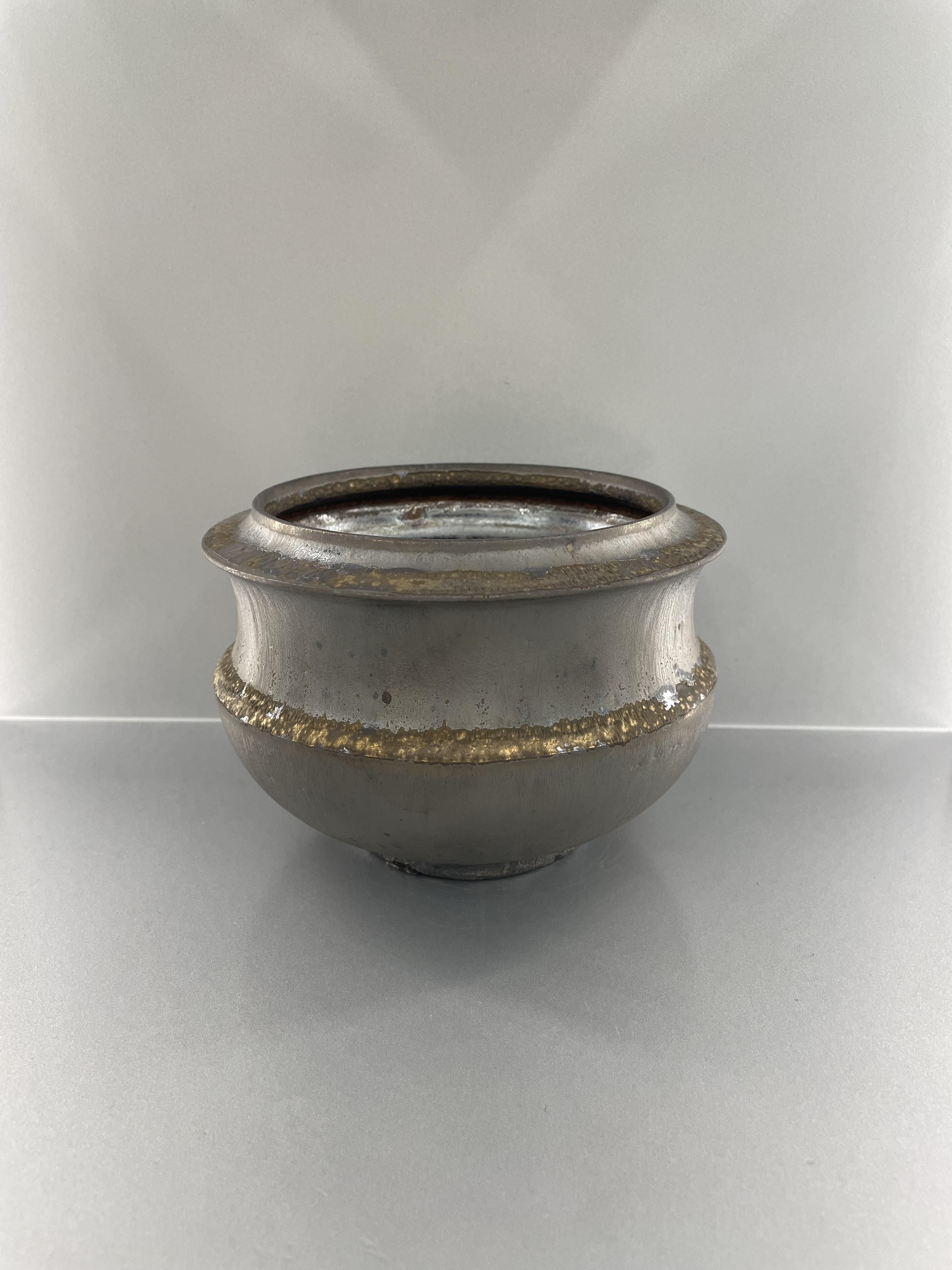 植物の美しさを引き立たせる、独創的な造形美と重厚感を兼ね備えた陶芸作品。