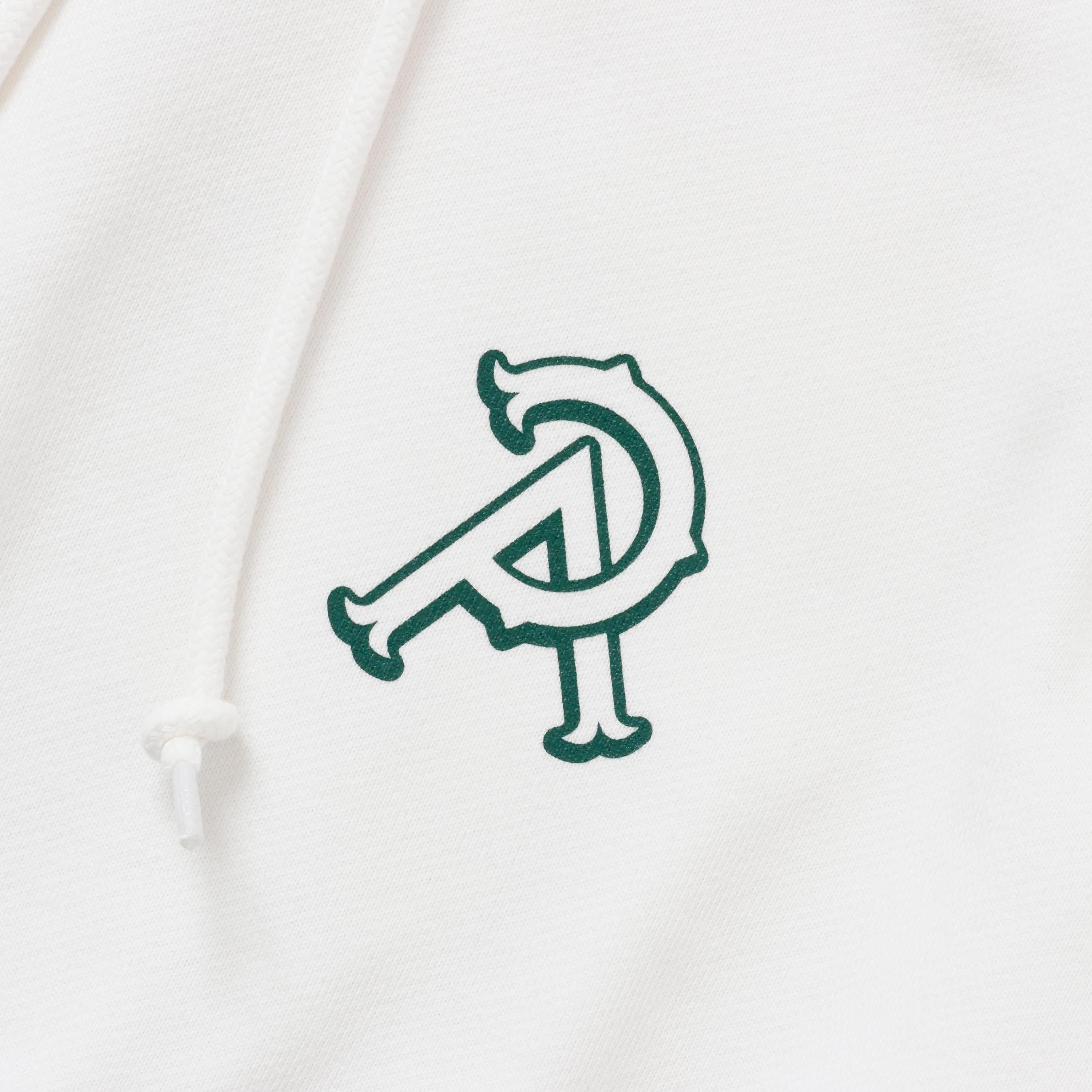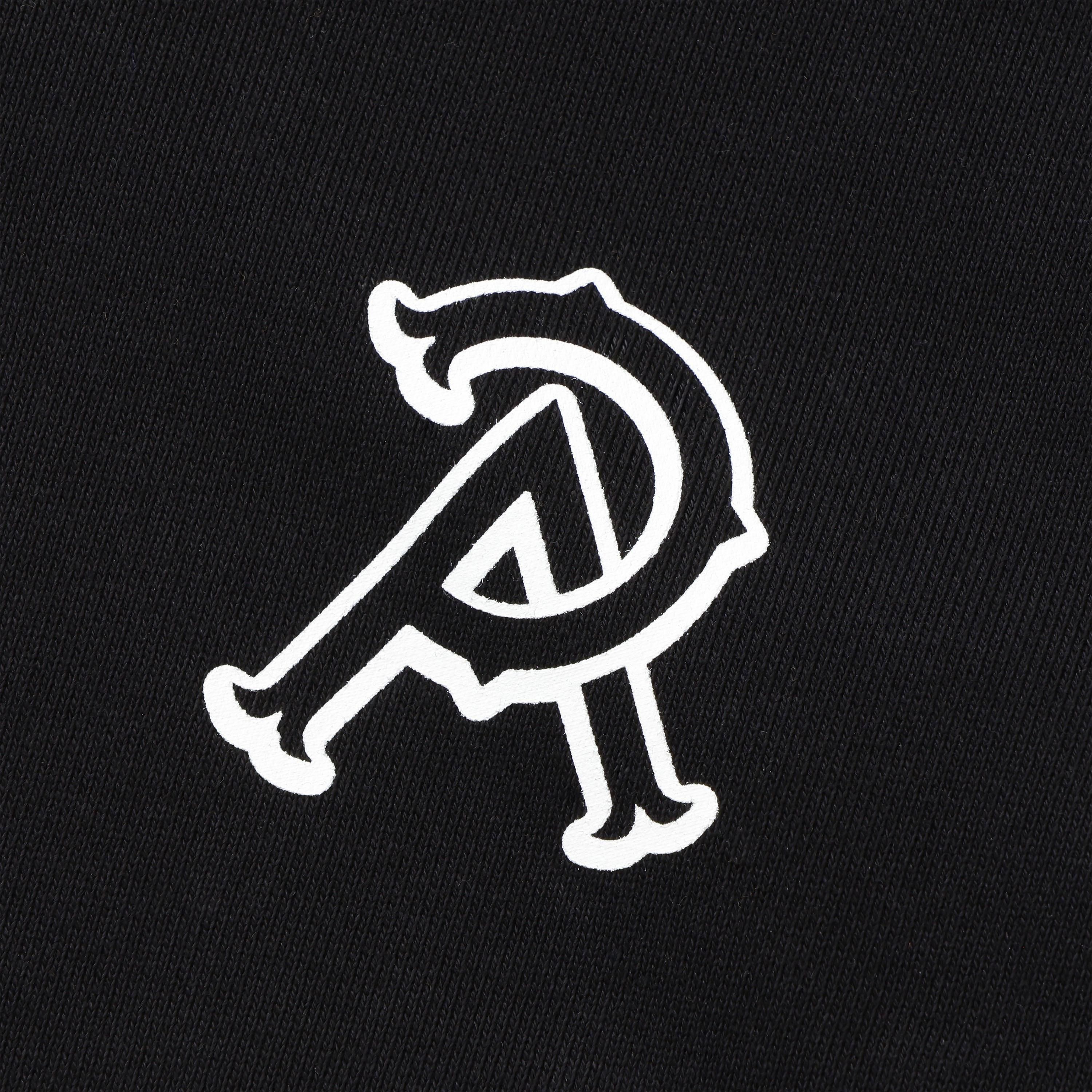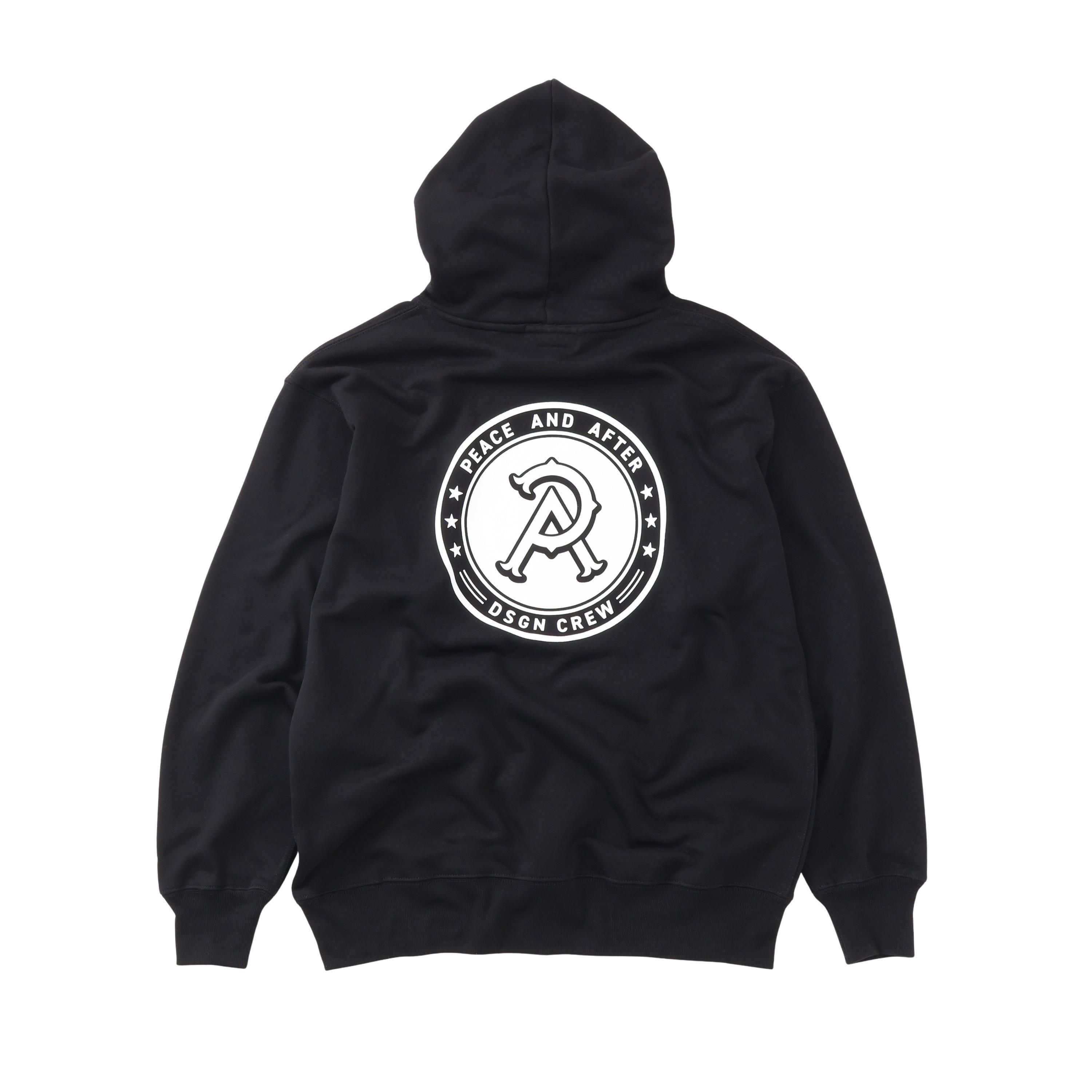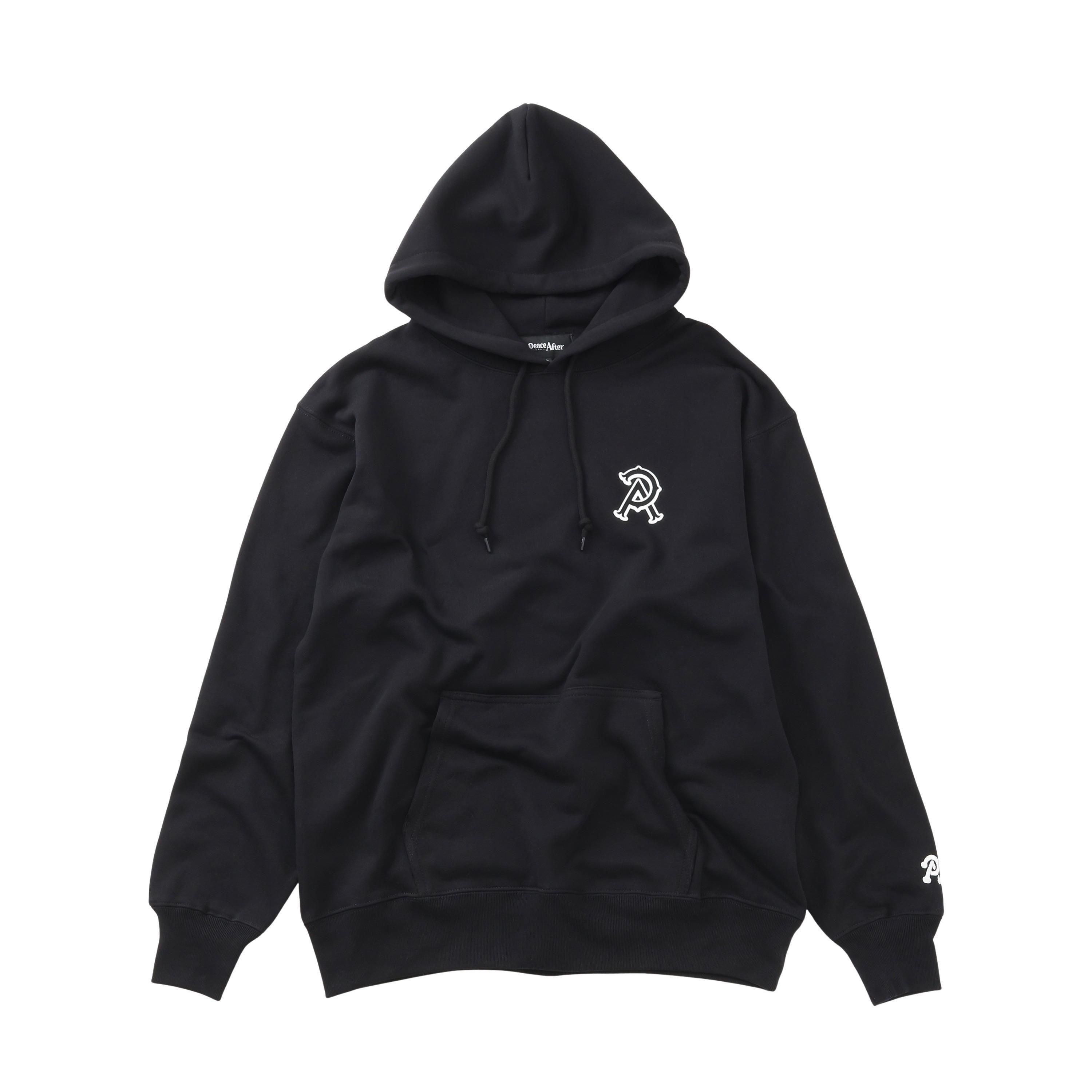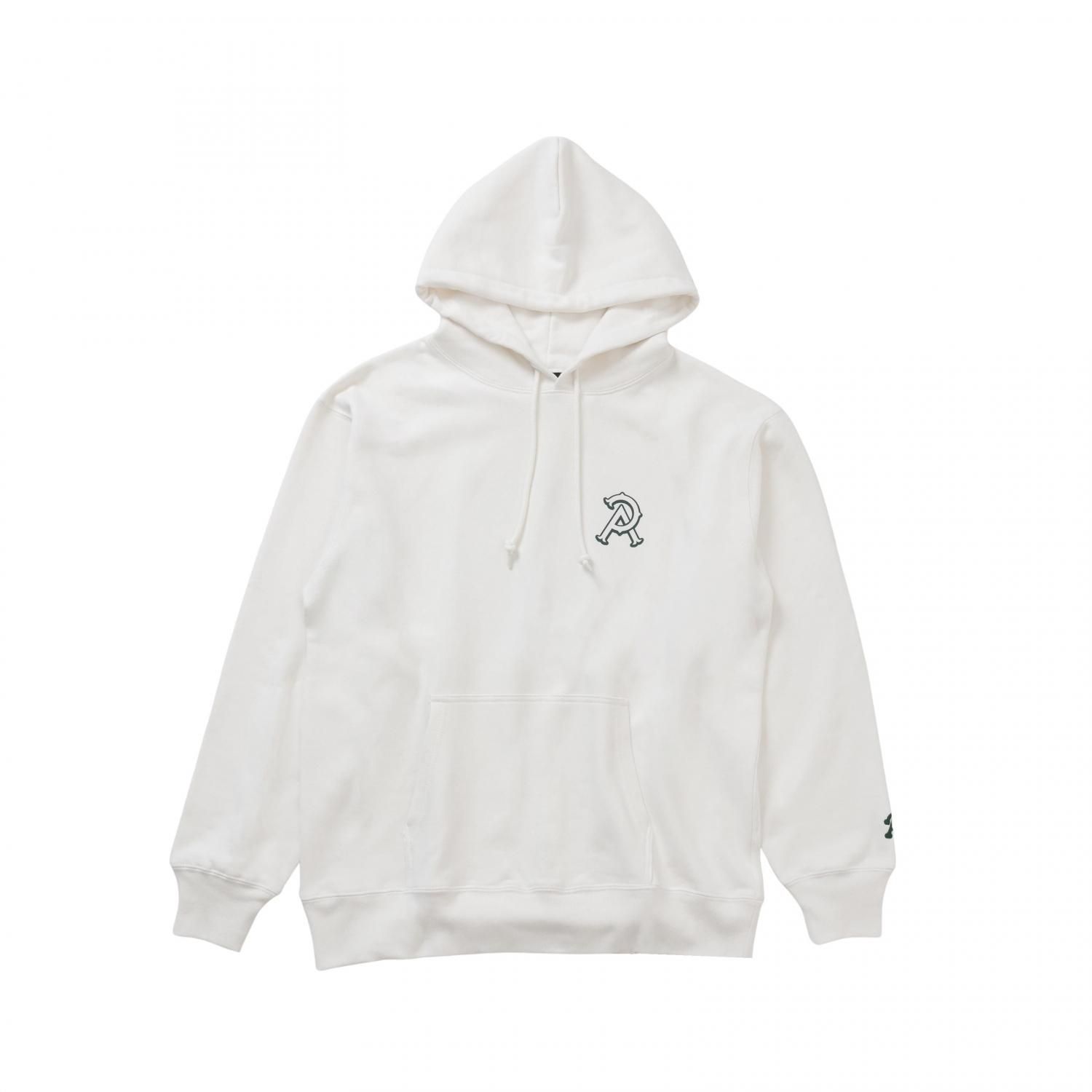 ドライタッチなコットン裏毛素材を使用したプルオーバーフーデッド。左胸にワンポイントのP&Aロゴ、背面にP&Aのエンブレム風アートワークロゴを厚盛りラバープリント、左袖にPマークロゴをエンブロイダリーで表現したデザイン。フード口にスピンドル、腹部にマフポケットを配置。身幅にゆとりのあるシルエット。2色4サイズ展開。12.7oz。(後で変更)