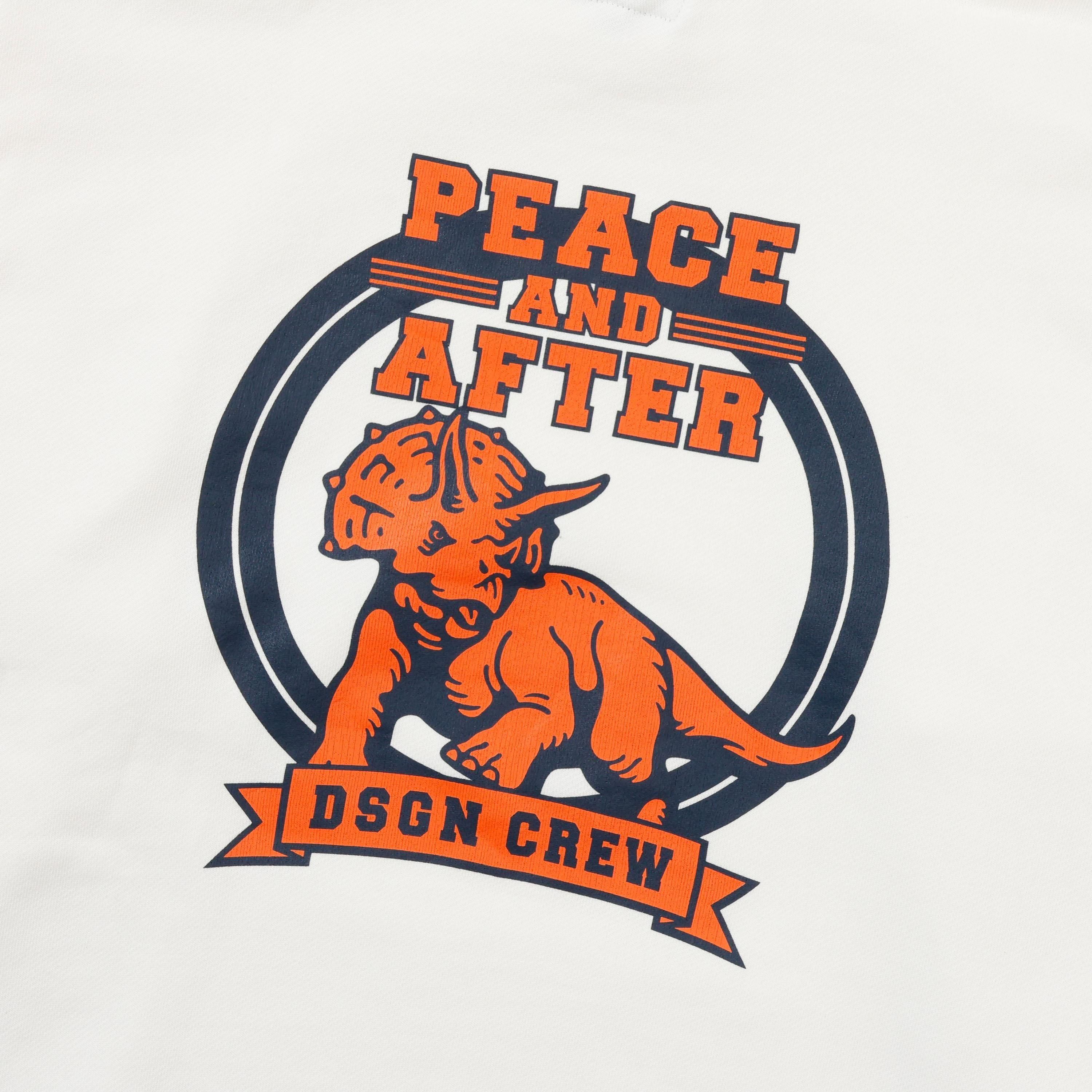 ドライタッチなコットン裏毛素材を使用したプルオーバーフーデッド。カレッジテイストに仕上げたトリケラトプスのグラフィックを背中にプリントし、フロントにはフォントデザインをプリント。左袖にPマークロゴをエンブロイダリーで表現したデザイン。フード口にスピンドル、腹部にマフポケットを配置。身幅にゆとりのあるシルエット。2色4サイズ展開