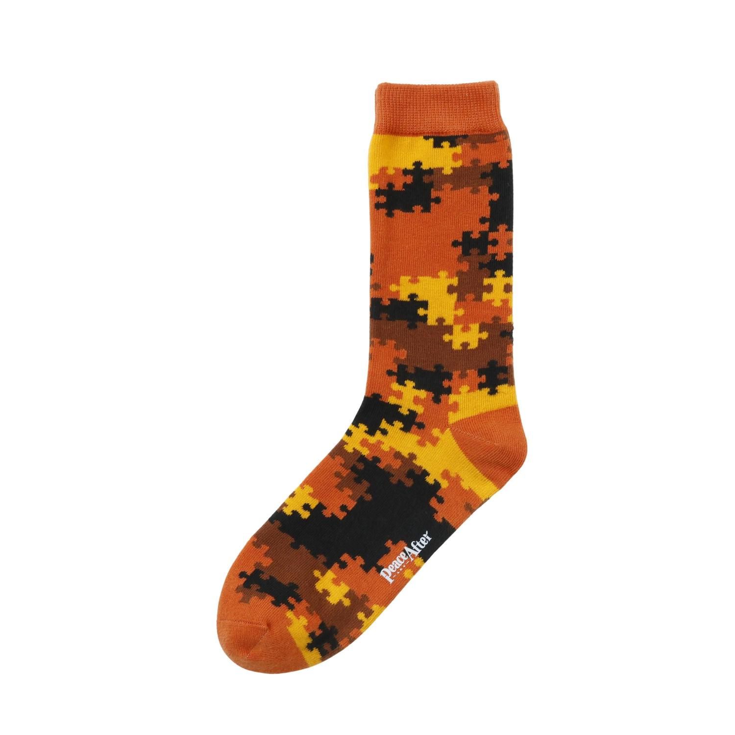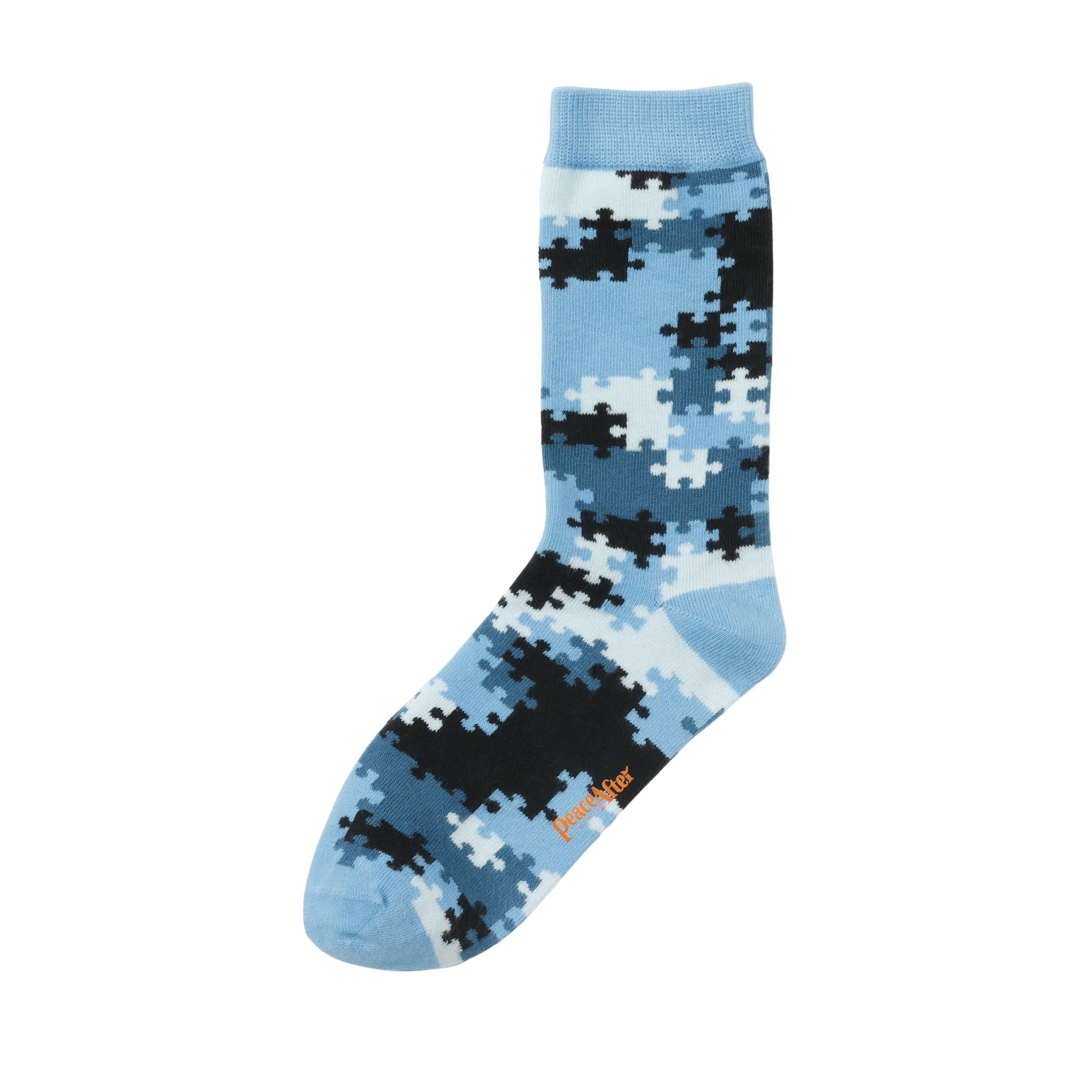 "パズル風に仕上げたカモフラージュ柄ソックス。