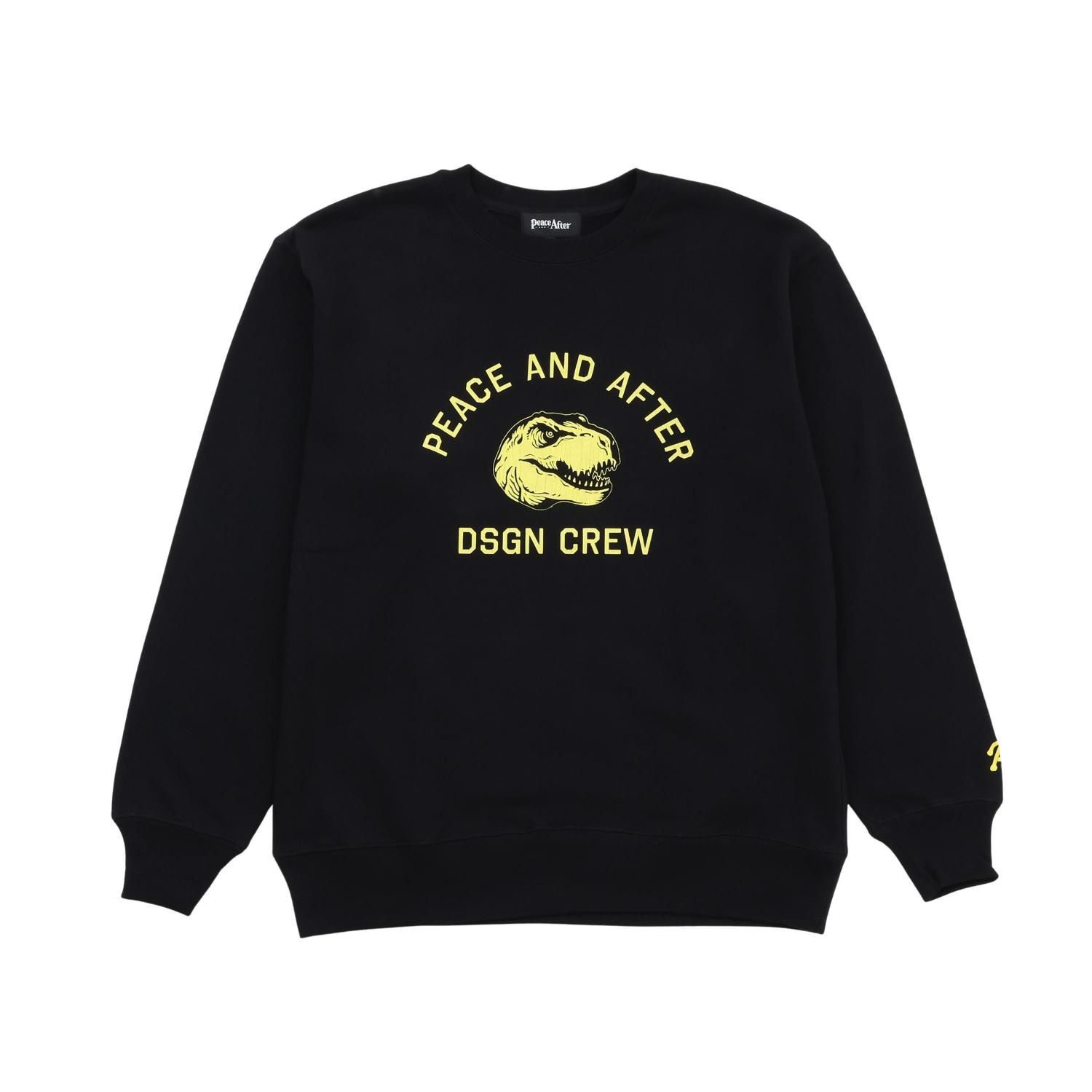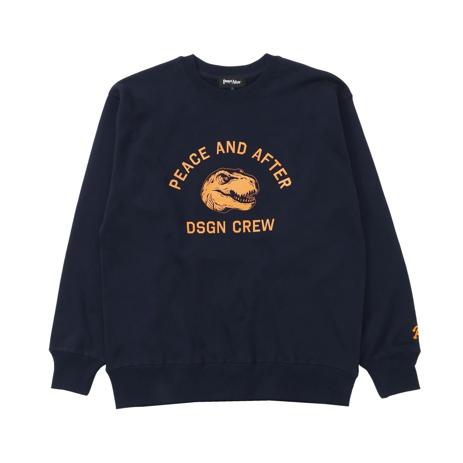 "ドライタッチなコットン裏毛素材を使用したクルーネックスウェットシャツ。フロントにアーチ型P&Aロゴ、T-Rexフェイス、レターグラフィックを組み合わせたアートワークをクラックラバープリント、左袖にPマークロゴをエンブロイダリーで表現したデザイン。クラックなプリントが特徴的。セットインスリーブながら身幅にゆとりのあるシルエット。